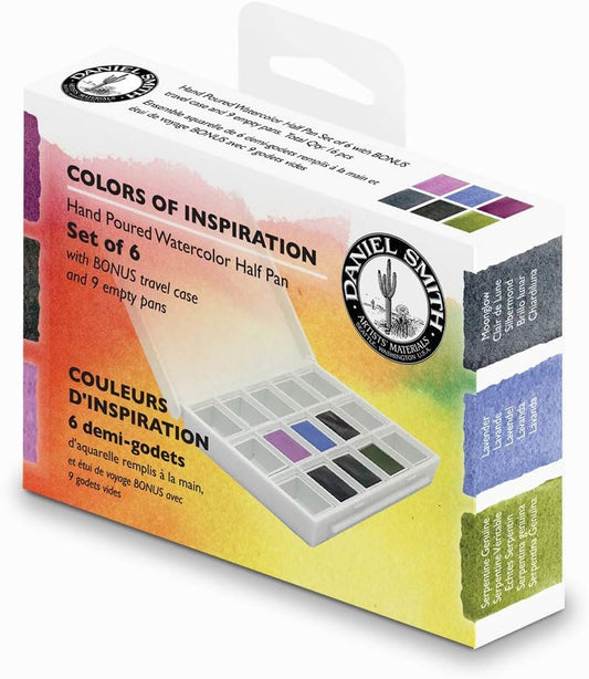 DANIEL SMITH Hand Poured Watercolor, Half Pans, Colors of Inspiration Set with 6 Watercolor Half Pans, 9 Empty Half Pans, 1 Plastic Travel Case 285650003