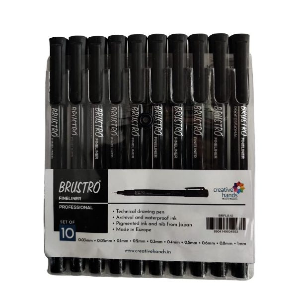 BRUSTRO PROFESSIONAL FINELINER BLACK SET OF 10